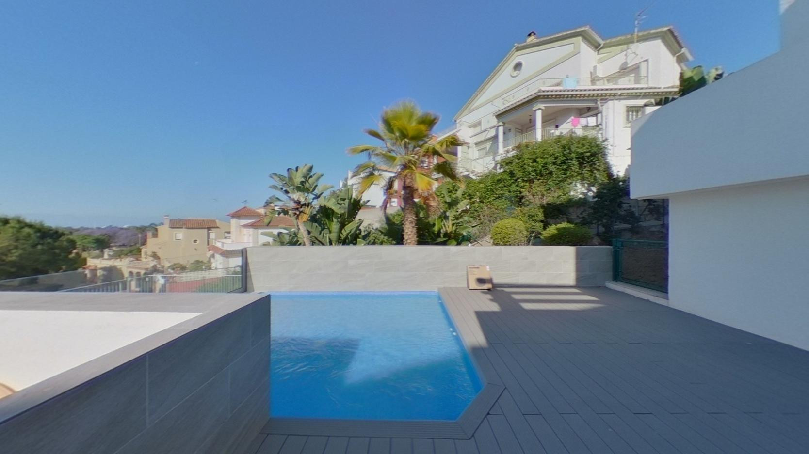 Renting or own use? Moving in is actually possible immediately, as this almost 60m2 bijou is fully furnished and high quality equipped. Although built in 2022, it feels like a first occupancy. Upon entry you will find a modern open plan kitchen & living-dining area, a separate bedroom, a pleasantly large shower bathroom and a very spacious 21m2 terrace with views of the sea and the surrounding green landscape. There is also plenty of storage space in the form of fitted wardrobes, a utility room with washing machine in the kitchen and comfortable underfloor heating in the bedroom and bathroom. The included LOEWE TV can provide variety on cooler days. Of course, this attractive apartment also comes with a own outside parking space. The complex is gated, has a large communal pool and a modern, cozy lounge including a GYM. Only 7 minutes by car and you can do your shopping or have easy access to the A7 in the direction of Marbella. The Costa del Sol hospital is also close by. Of course, you will also find the nearest beach, Playa Bahia de Marbella, just 8 minutes away by car and many more within a 10-15 minute drive. The same applies to many golf courses in the area, which can be reached quickly by car. The new owner could, for example, work comfortably from home or let tenants enjoy the apartment, because here you will find the most modern comfort combined with tranquillity and Andalusian flair, also due to the well-kept and Spanish-style complex.
