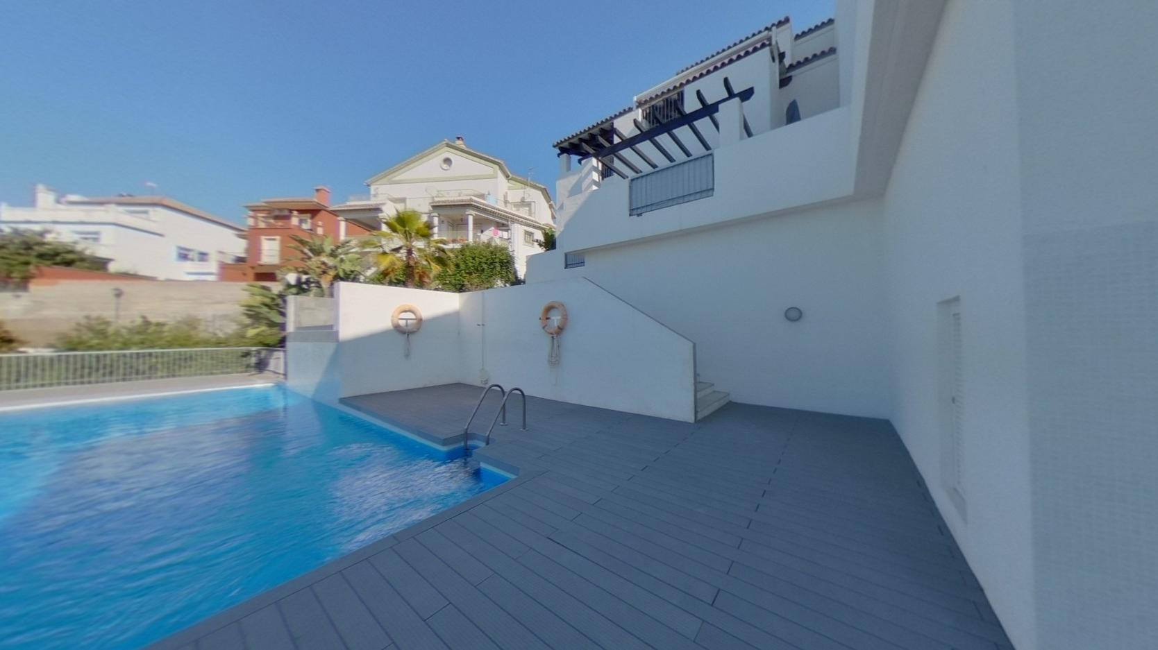 Beautifully renovated, south west facing, two bedroom apartment located in the residential area of Reserva de Marbella, just minutes from the beach, supermarkets, restaurants, and beach bars. The urbanization offers a communal pool and a peaceful, well-maintained communal area, ideal for both permanent living and holidays. This property has a south west orientation and perfectly combines comfort, privacy, and an excellent location near the sea. The apartment features a spacious open plan, living room with direct access to a sunny terrace, ideal for outdoor dining and relaxation; a fully equipped kitchen with modern finishes; two well distributed bedrooms; and two bathrooms, one of them en-suite. Other features include fitted wardrobes, a storage room, air conditioning and a private parking space. Please note that while this property does not currently hold a touristic license - short term rentals are allowed in this community
