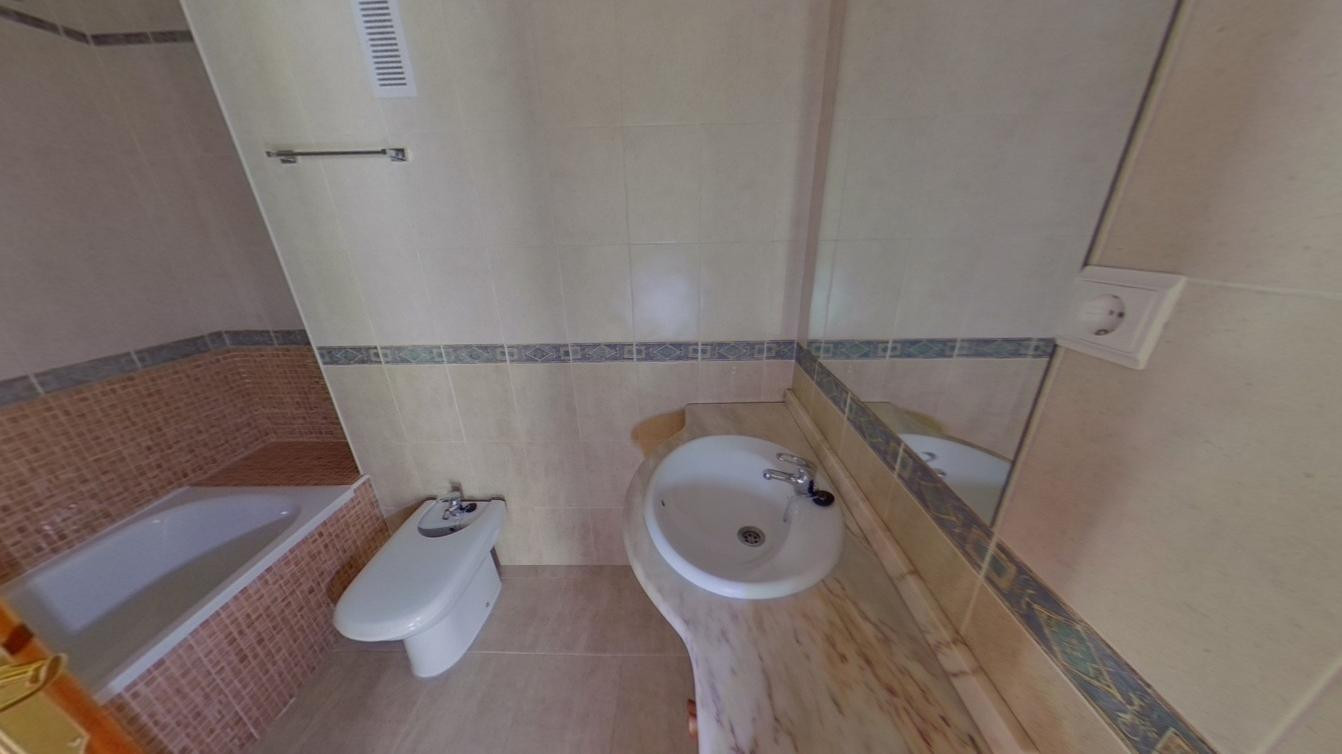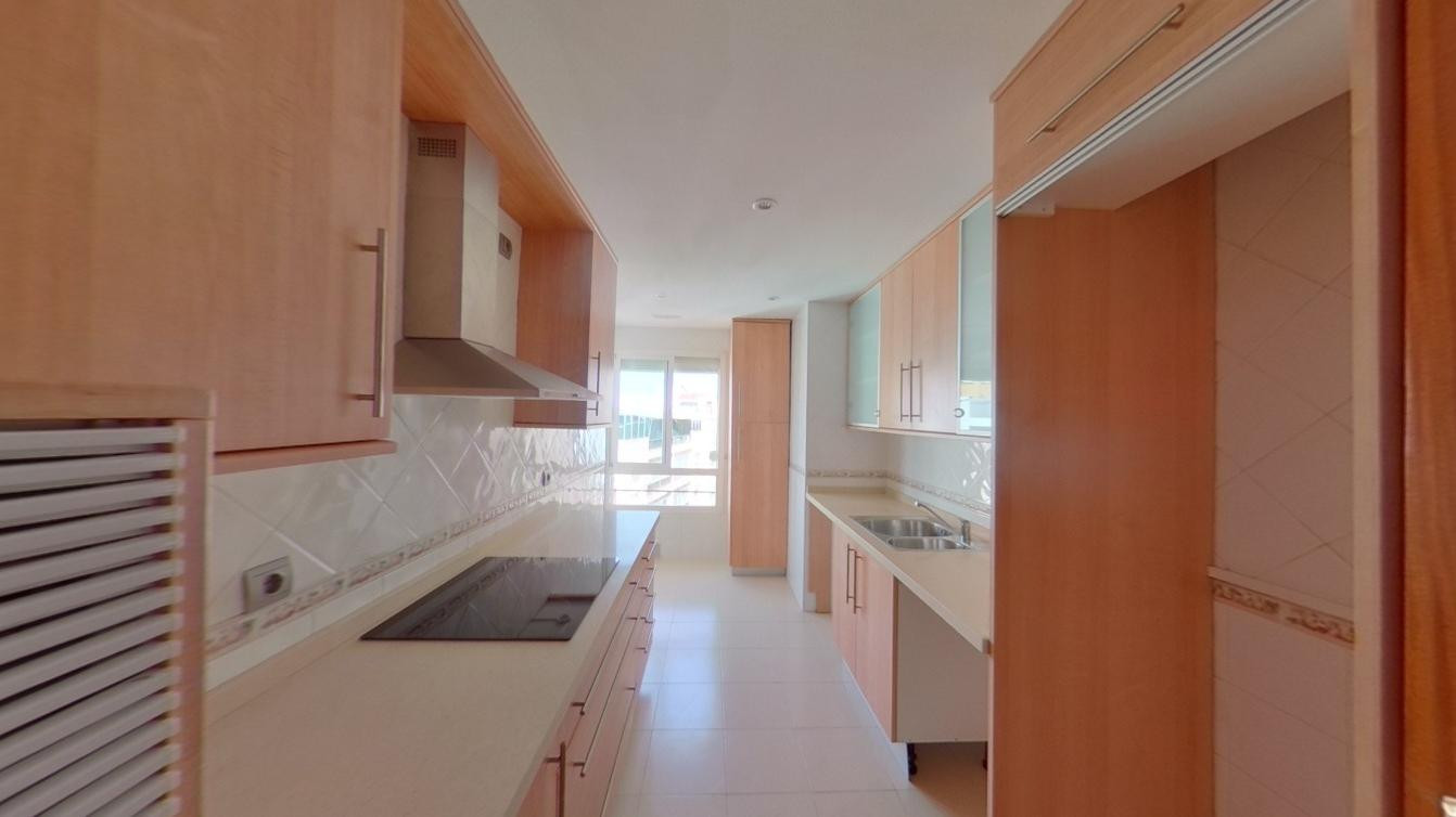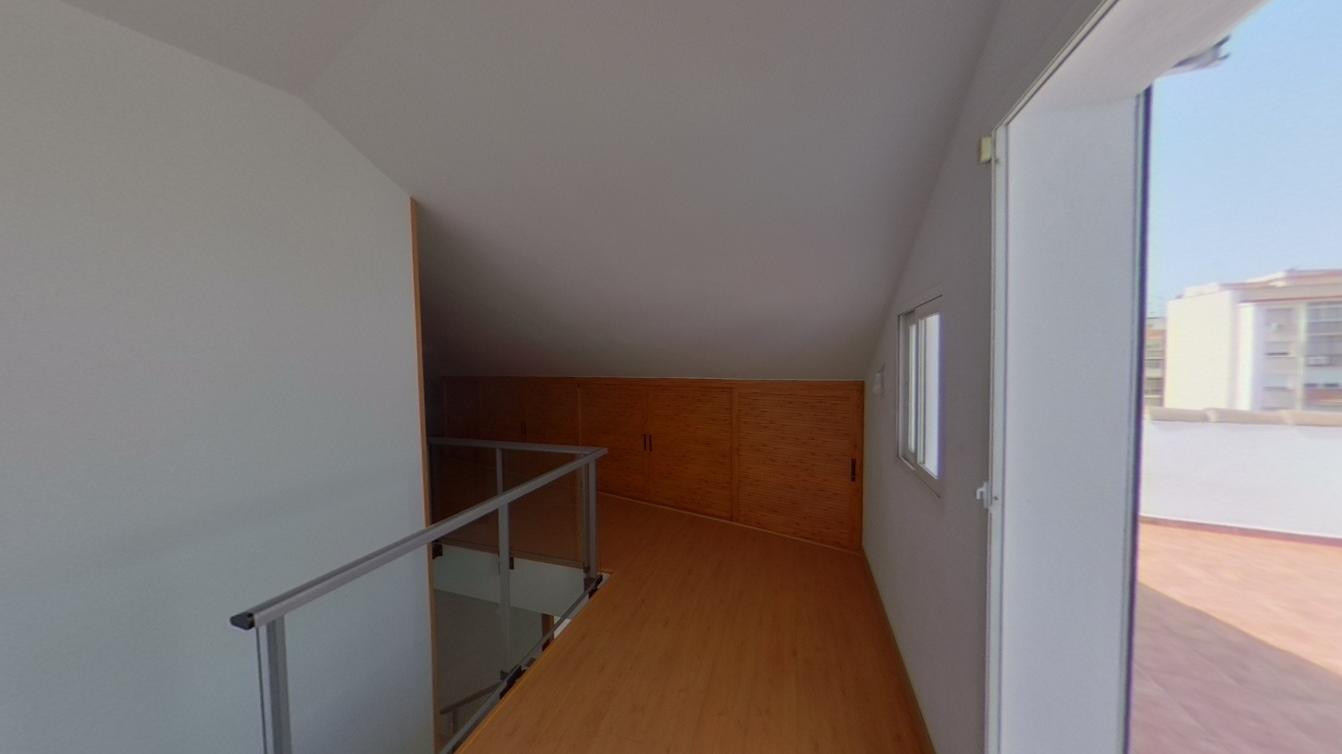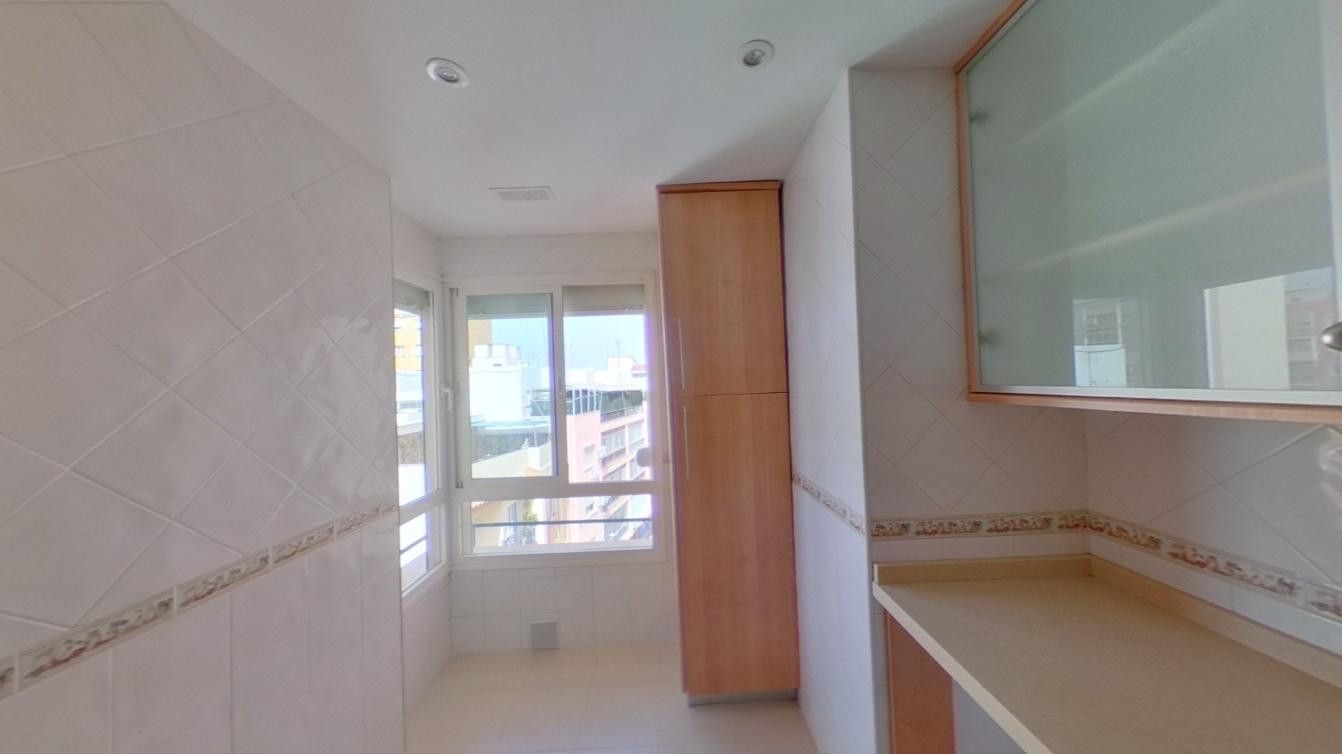 Spectacular PENTHOUSE with well-distributed and spacious rooms and travertine floors. A sprawling location with a hospital, school, and shopping area very close by. Beaches are a 5-minute drive away. It consists of two bedrooms with built-in wardrobes and two bathrooms (one en suite). A large living room with a very spacious dining area. A 27 cubic meter storage room. A parking space next to the storage room is also available. It is possible to install a glass enclosure on the terrace, allowing for a wider comfort zone during different times of the year. Tiled kitchen and laundry room. Property purchased in 2021. Garage space included in the price and parking for more cars. Electric heating and access and living area adapted for people with reduced mobility. Second-floor penthouse with elevator, air conditioning, communal pools, and green areas. Don't hesitate to contact us for a viewing!